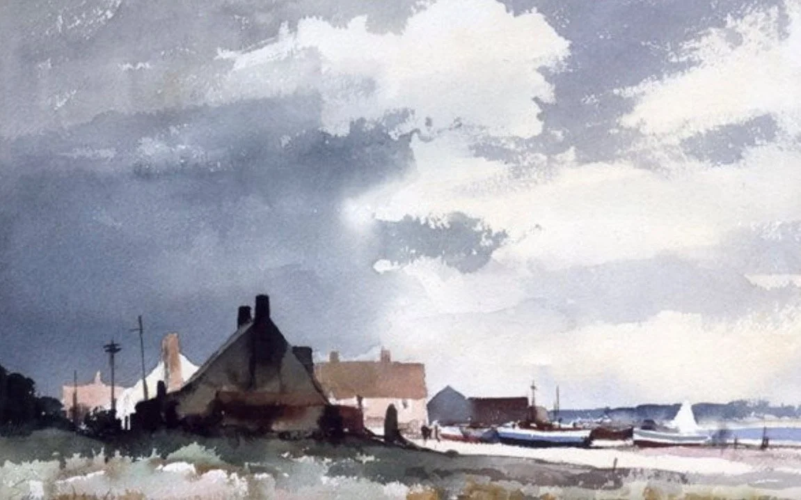 This watercolor painting was inspired by another painting. It gives a sense of a new day and the wonder of what might be.
