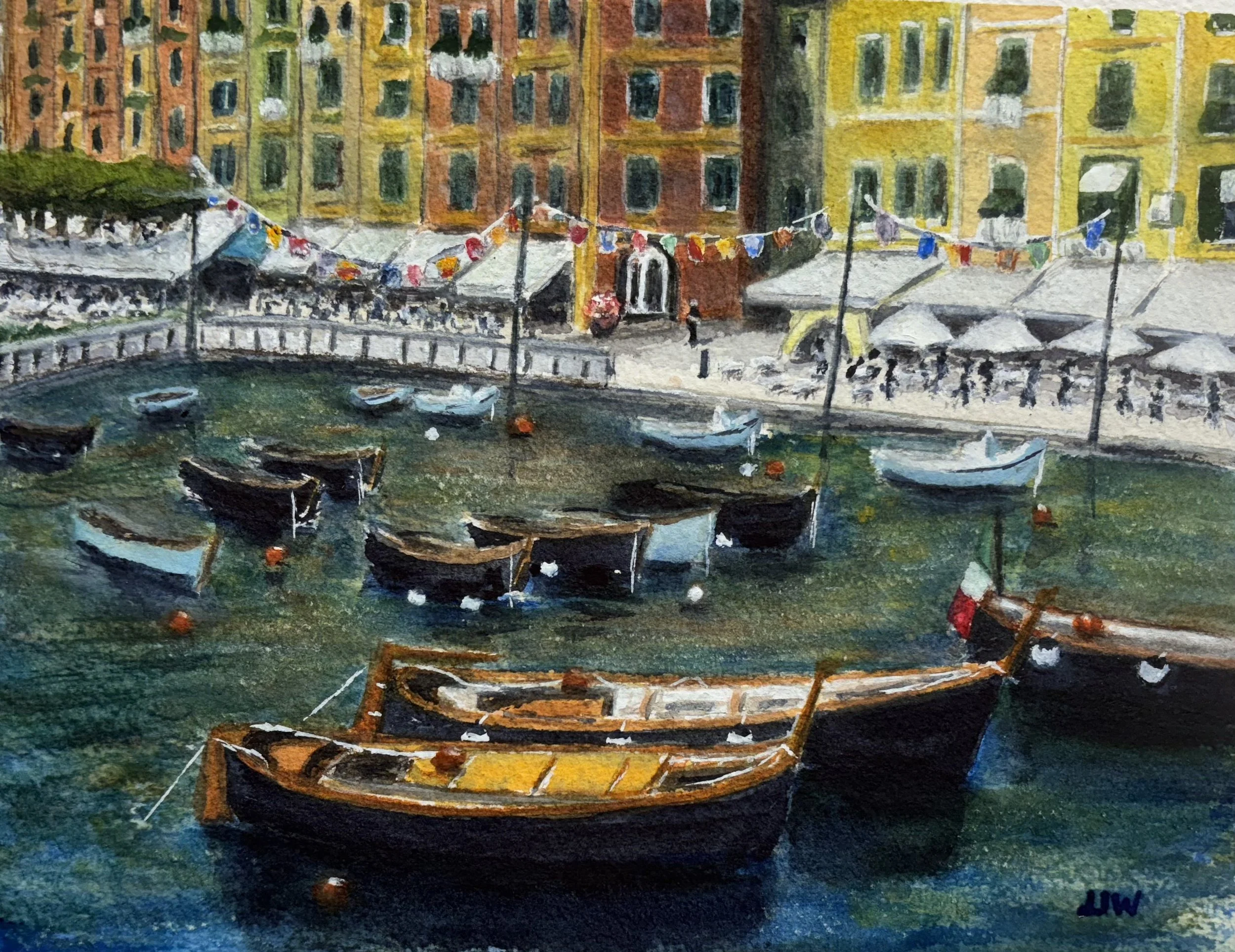 This original watercolor painting was painted from a photograph taken by Doug Comfort. I loved all of the color. This harbor scene definitely represents the Italian Riviera it is a part of.